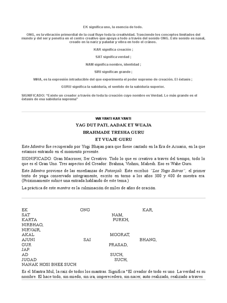 Mantras El Yoga De La Mente Intervenciones Mente Cuerpo Religiones Indias - The mul mantra is a fate killer.